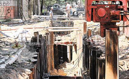Ya se ejecutó el 50% de la obra. Los vecinos dicen que es la primera vez que se hacen trabajos de esa magnitud sobre un hundimiento histórico.