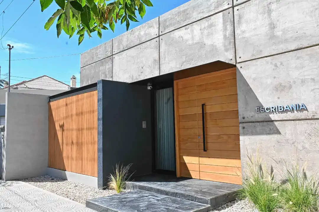 En el centro de General Roca se construyó la nueva sede de la Escribanía Cancio – Scotti, un edificio de 258 m2 que reemplaza por completo a una vivienda antigua demolida. El proyecto, desarrollado por el estudio La Sala Arquitectura, responde a las necesidades actuales de la actividad notarial en una región en expansión, con fuerte movimiento inmobiliario y empresarial.